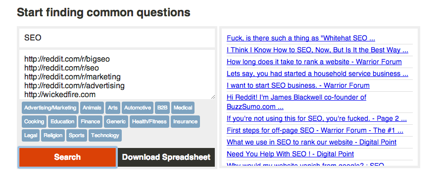 If you want to find questions your target audience are asking, then FAQ Fox is the tool for you. Input your topic, select or type in a URL and FAQ Fox presents you with questions that these people are asking. One of the big benefits is that you are seeing exactly how people are typing in the question and the language they use, uncensored and all.